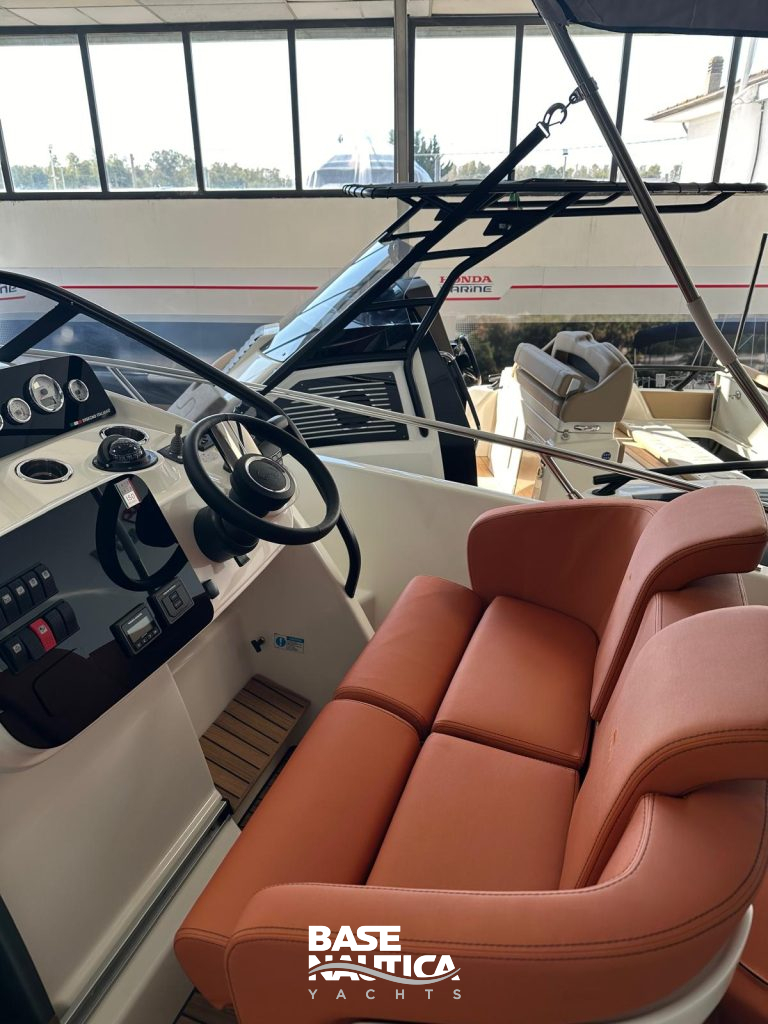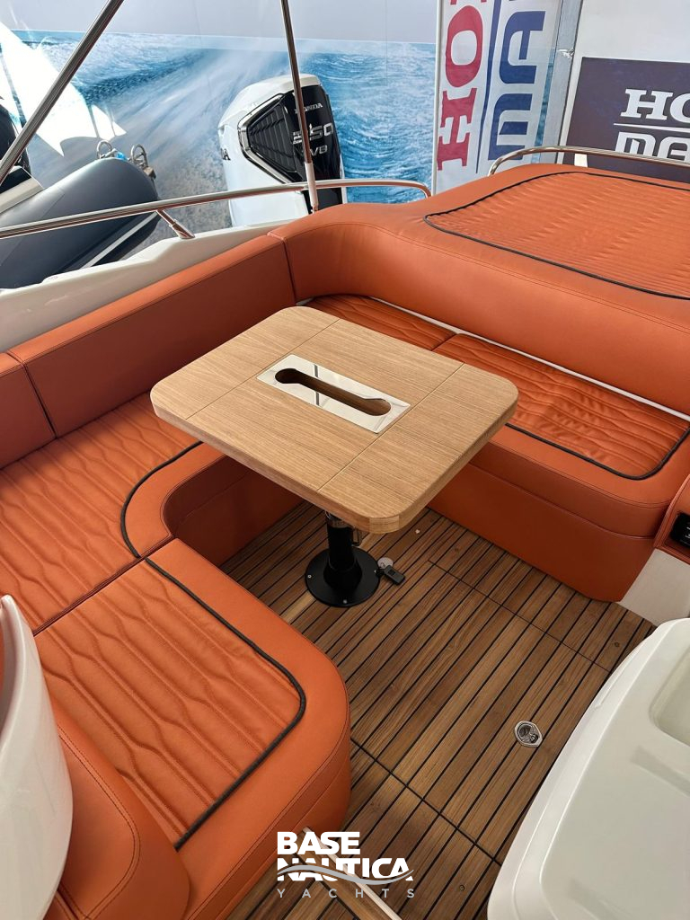 Barca sportiva e di carattere, grandi spazi prendisole a prua e poppa, dinette comoda e consolle di guida accattivante.