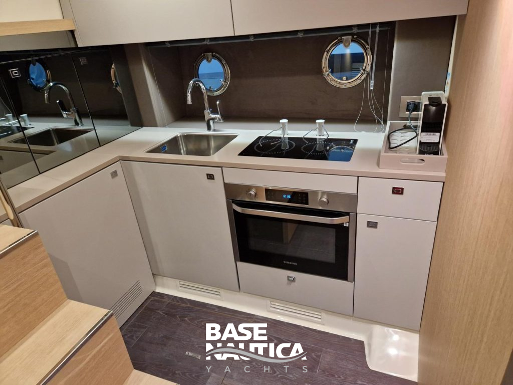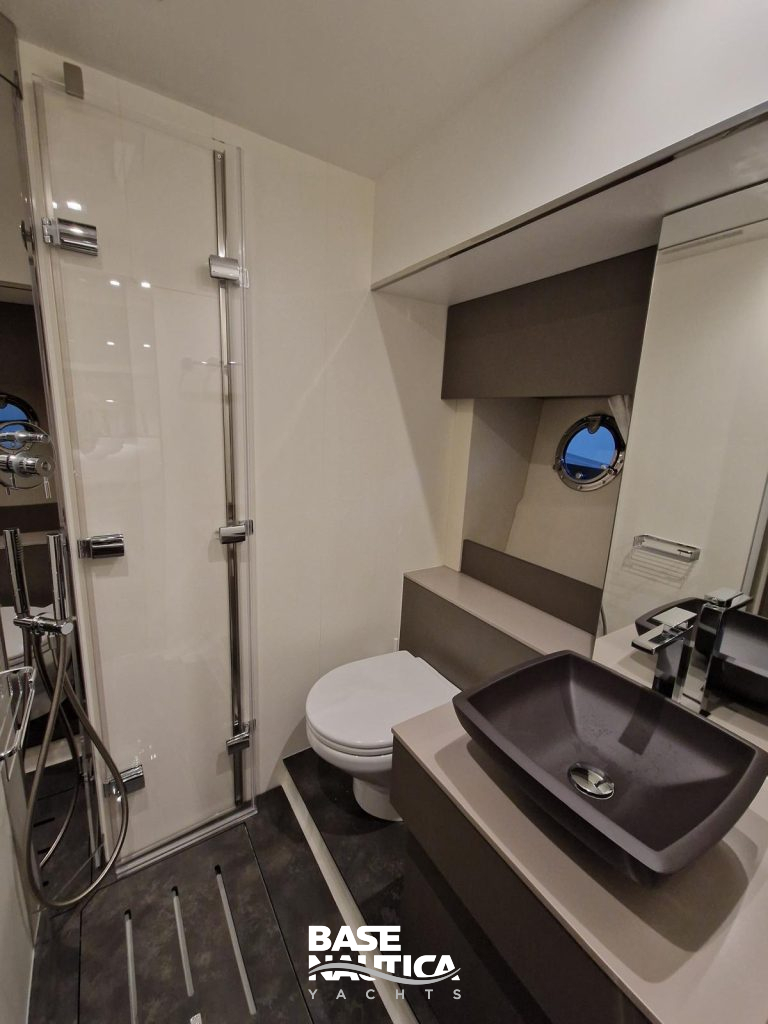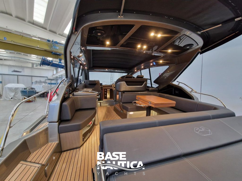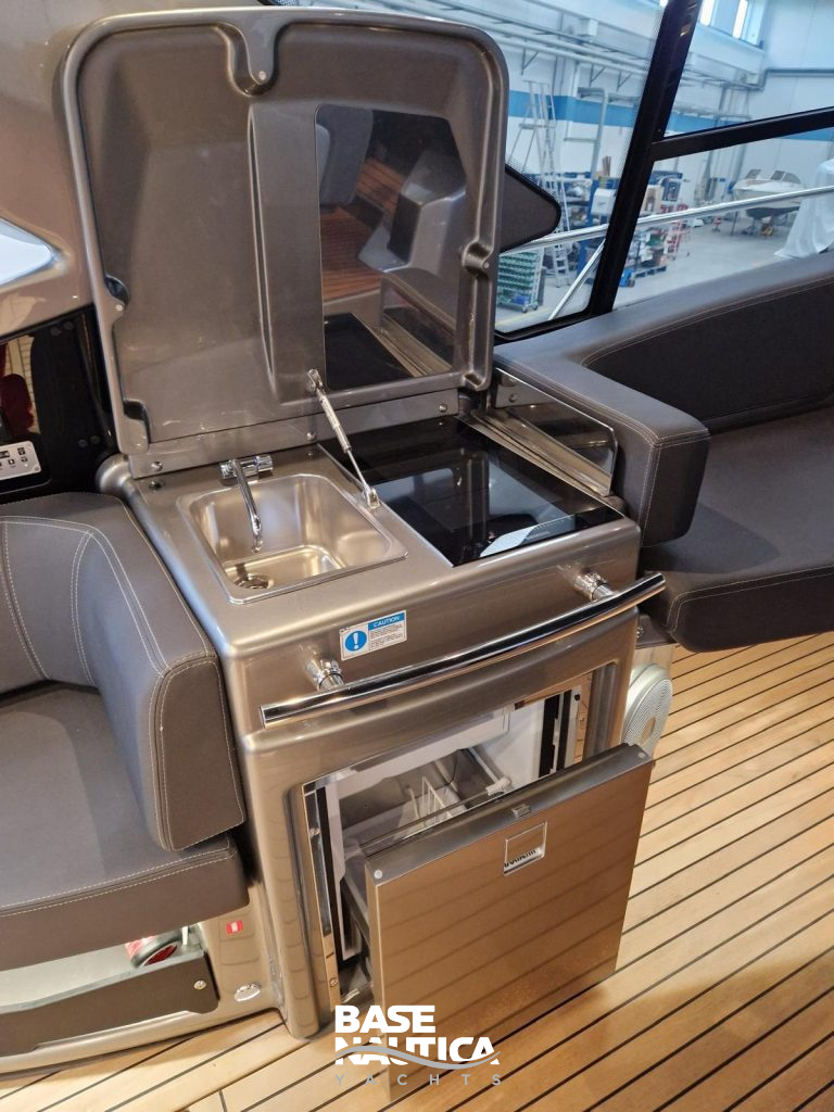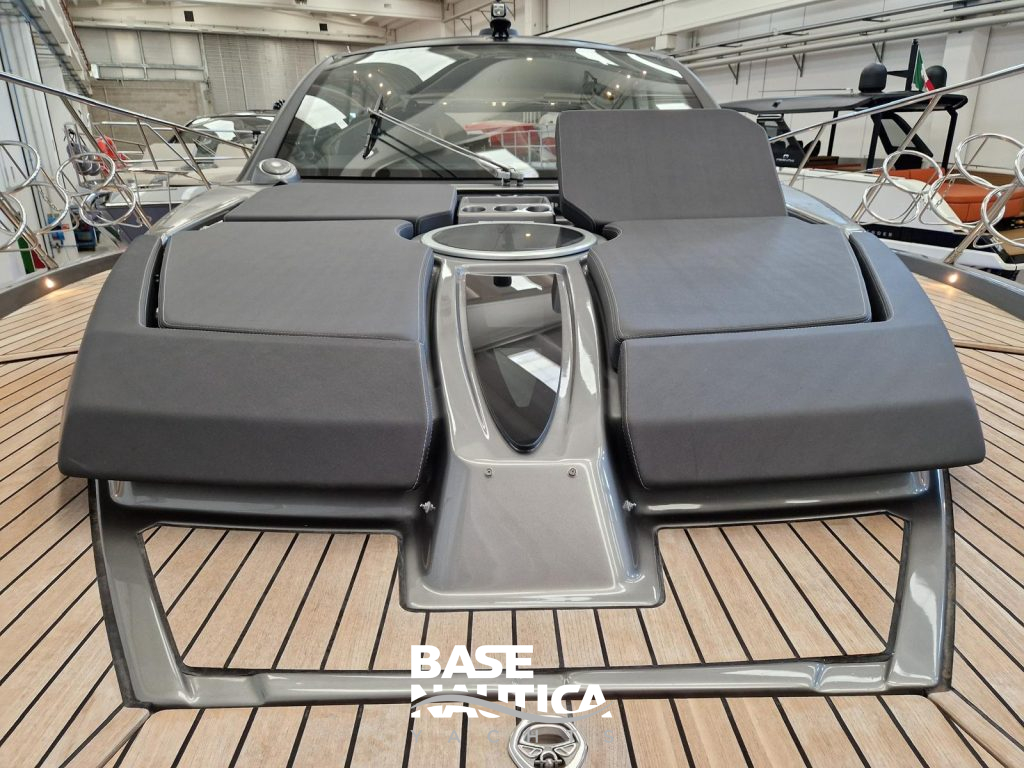 Generatore, Aria Condizionata cabine, Aria condizionata pozzetto , Teak Plancetta, Teak Pozzetto, Teak Trincarini, passerella idraulica, Autopilota, Verniciatura metallizzata completa: Hard Top “Nero Lava Matt” e scafo “Grigio Cosmo”.