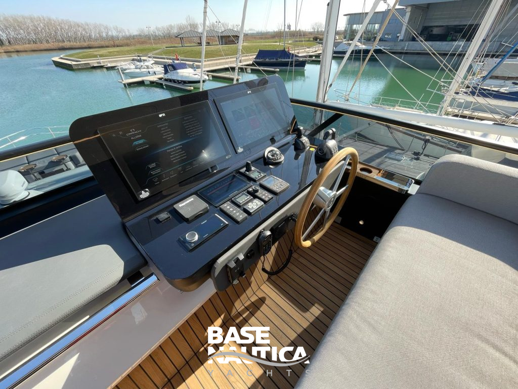 POSTAZIONE DI GUIDA INTERNA CON DOPPIO PLOTTER 22″, POSTAZIONE DI GUIDA SUL FLY CON DOPPIO PLOTTER 22″, RADAR, PILOTA AUTOMATICO, CORRETTORI D’ASSETTO HUMPHREE, PINNE STABILIZZATRICI HUMPHREE, STABILIZZATORE GIROSCOPIO SEAKEEPER, VHF, TRASMETTITORE AIS.