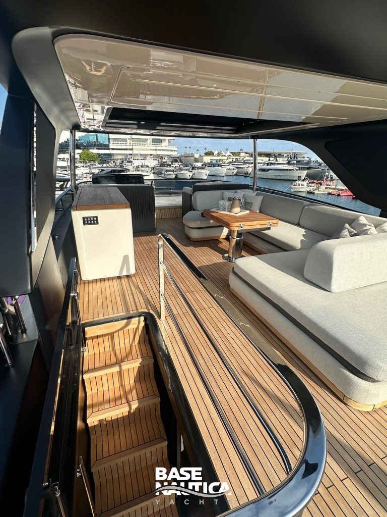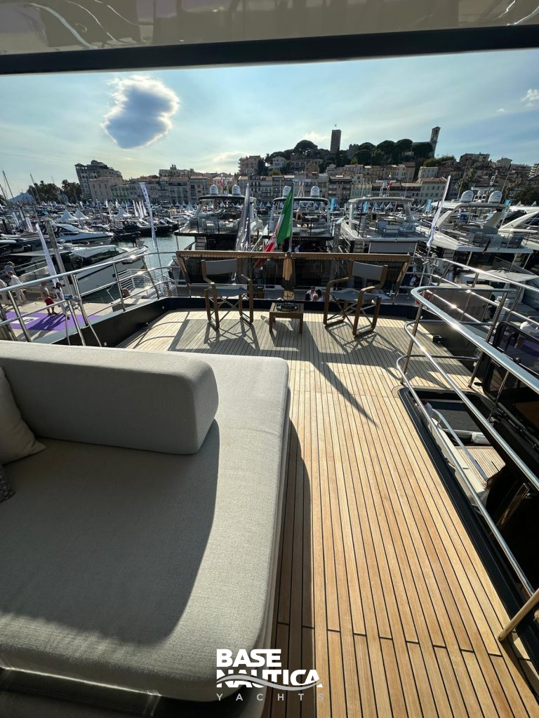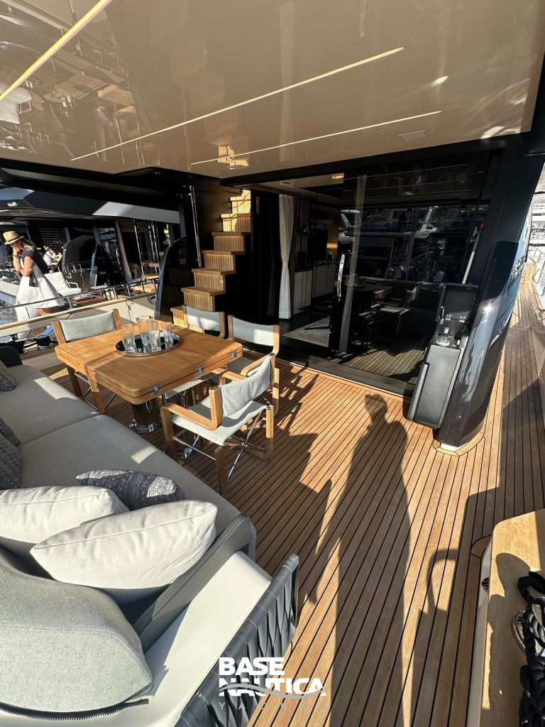 Sul main deck e sul fly, lo yacht offre grandi spazi all’aperto, con aree dedicate alla socialitĂ e al relax sia a poppa che a prua. A queste si aggiunge anche la spiaggetta raggiungibile in modo sicuro e agevole. Dotata di un lift che le permette di alzarsi e abbassarsi e di traslare in avanti, la plancia può diventare un’immensa terrazza sul mare grazie alla straordinaria superficie concessa dal vano garage rivestito in teak.