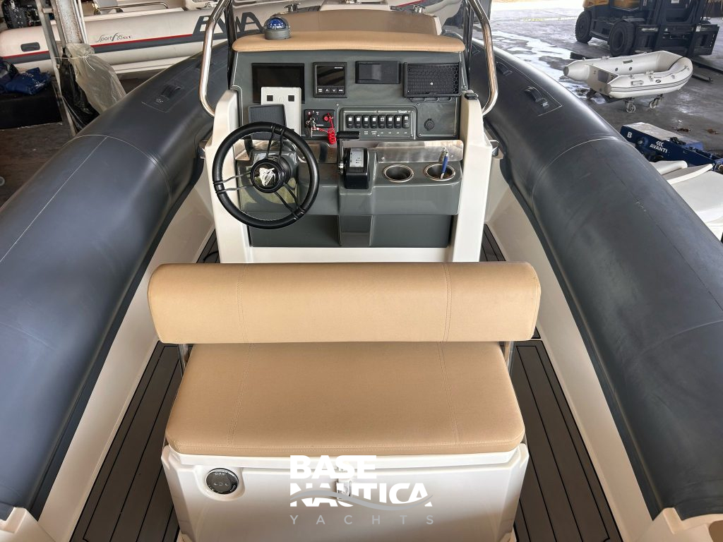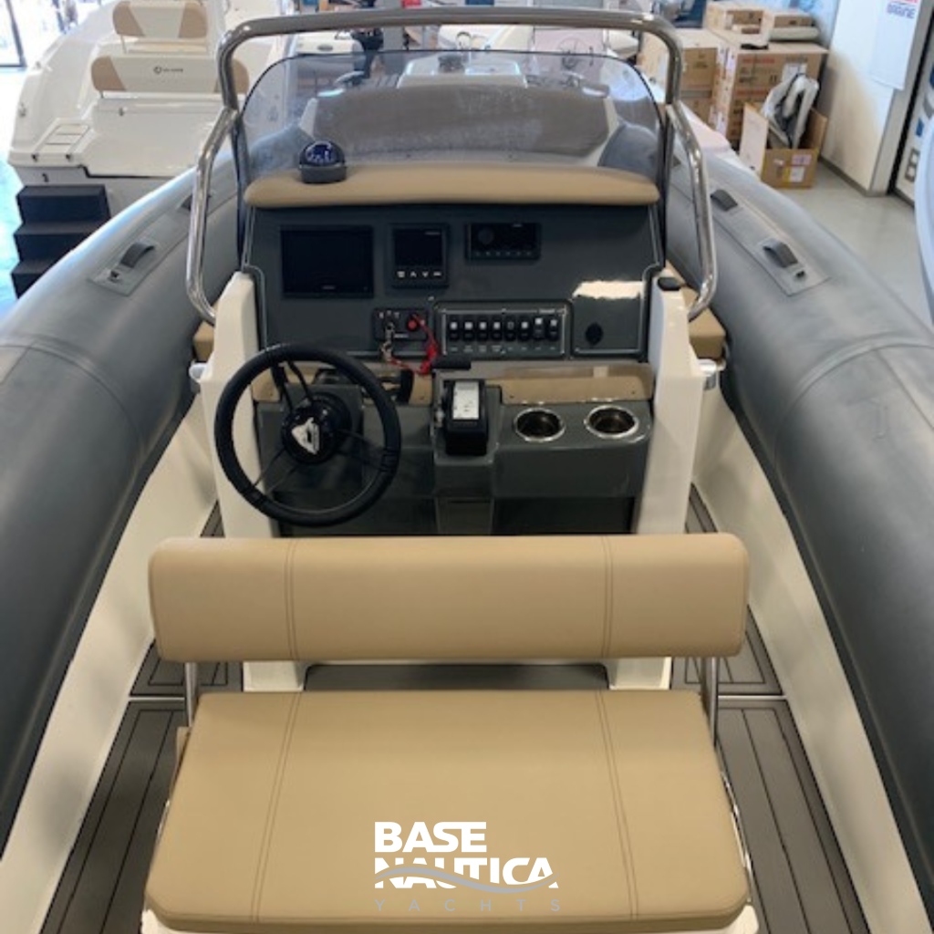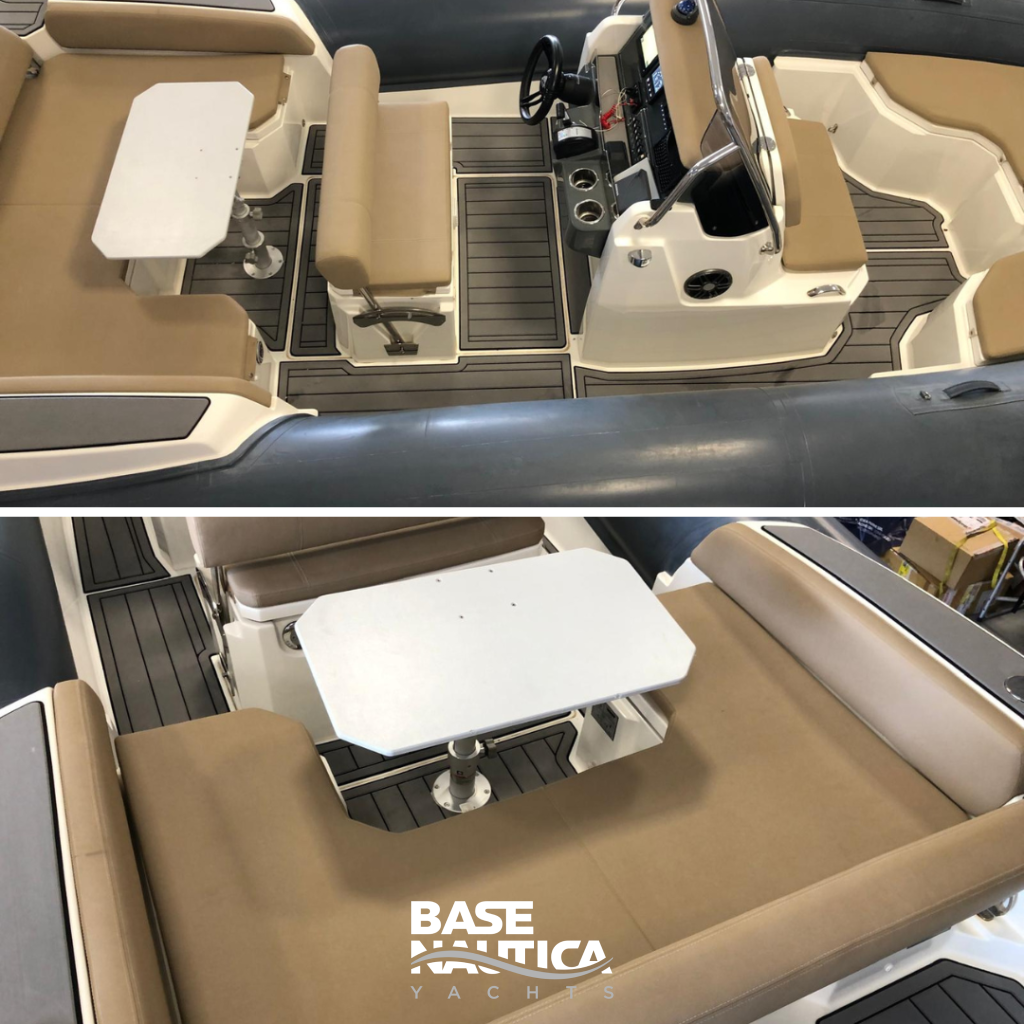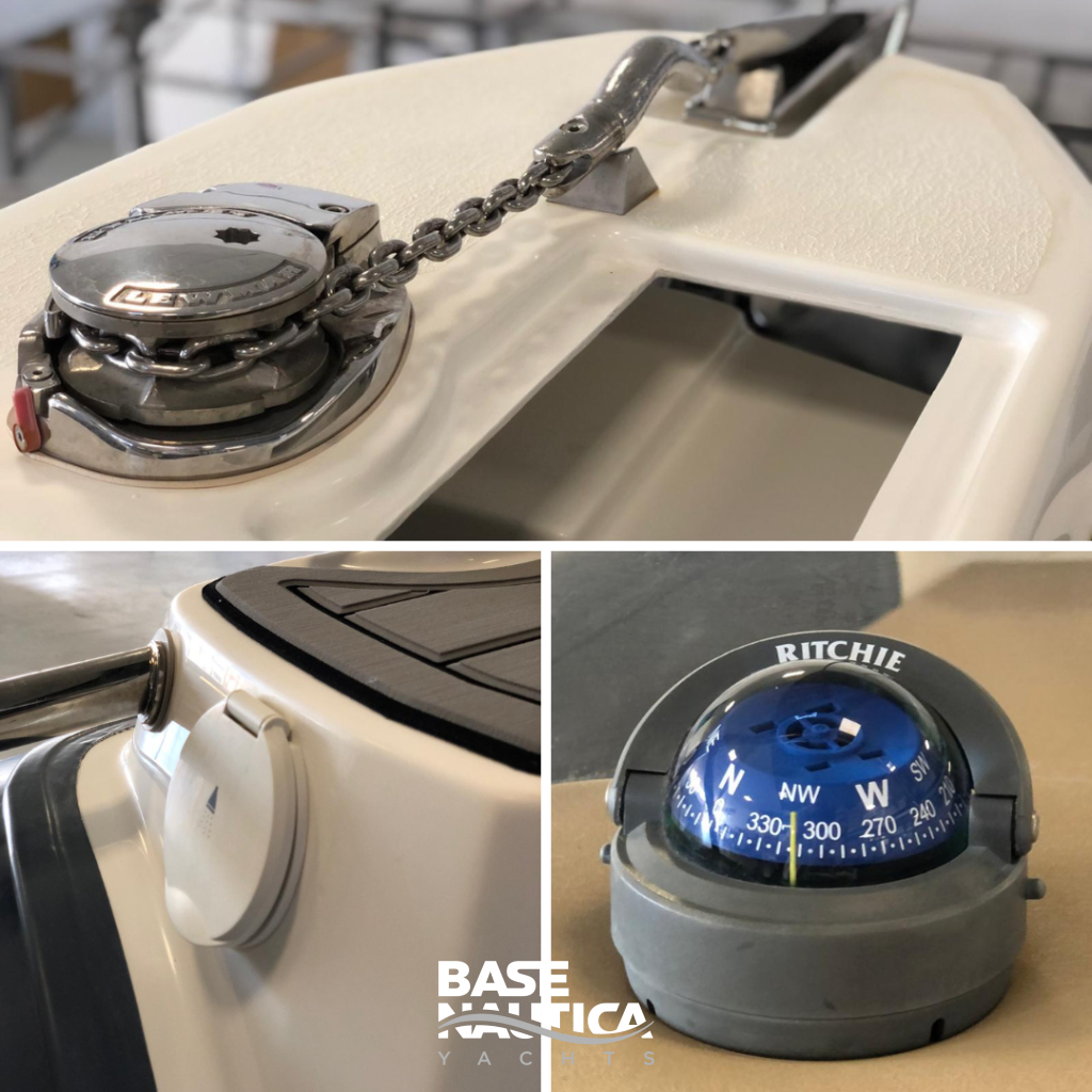 Tendalino parasole, tavolo pozzetto trasformabile in prendisole, seadek completo grigio, strumentazione GARMIN, tessuto tubolari military grey e tappezzeria beige silvertex, verricello elettrico, stereo fusion.