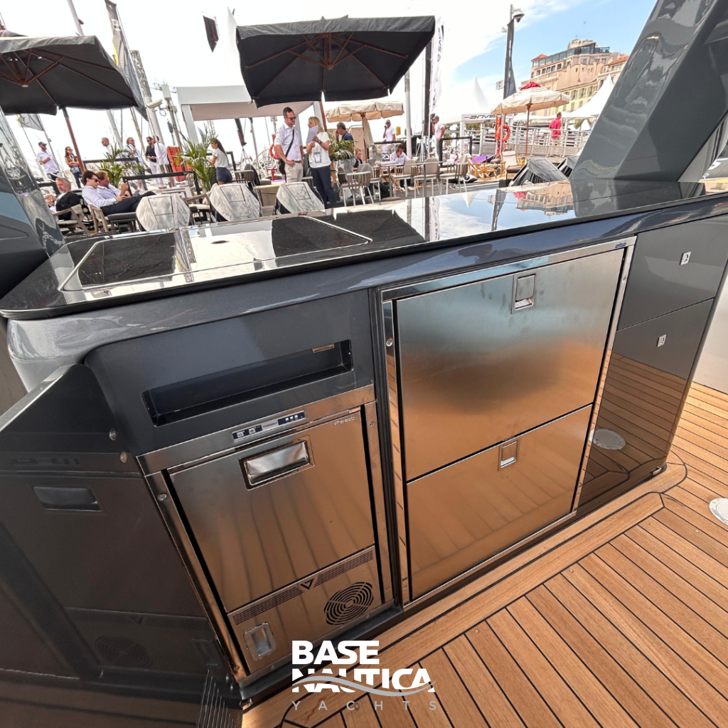 La versione Closed utilizza vetrate apribili per creare un secondo ambiente protetto, mantenendo il passaggio continuo prua-poppa grazie alla configurazione walkaround.