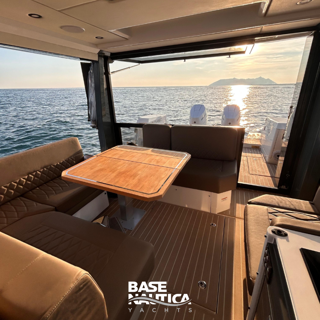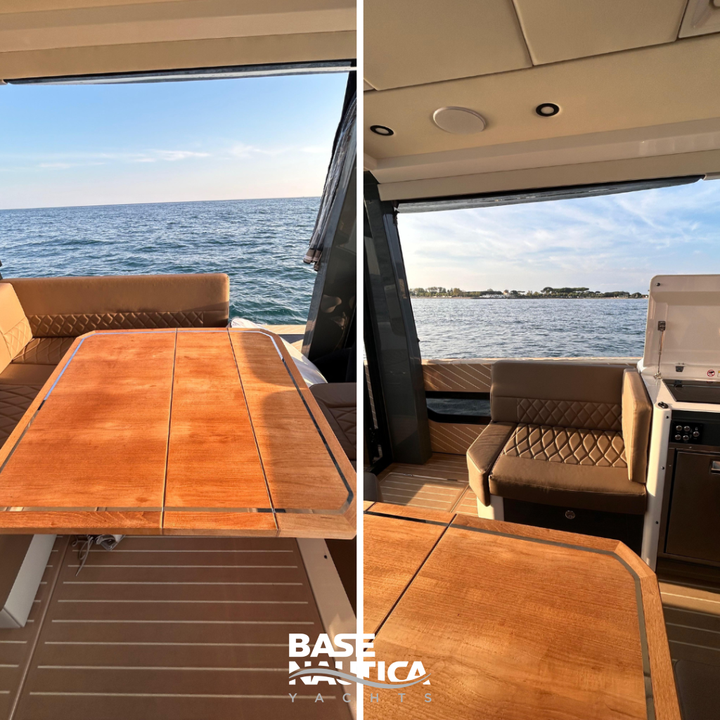Gli ambienti esterni si trasformano da zona di guida a veri e propri salotti affacciati sul mare grazie alle terrazze laterali apribili, mentre l’interno sorprende per abitabilità e luce naturale.