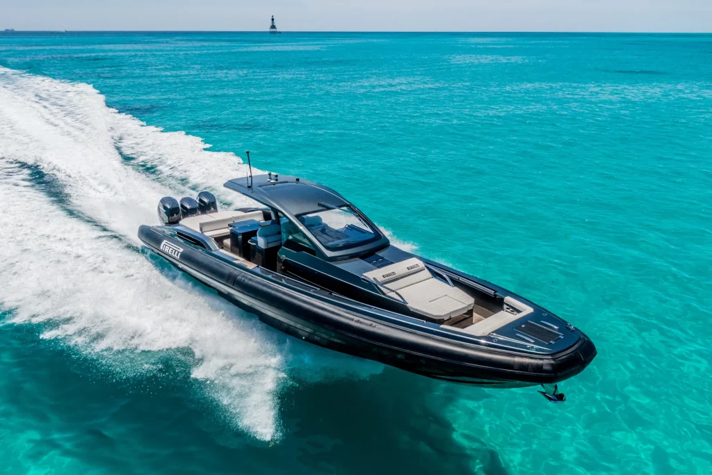 Il Pirelli 50 rappresenta l’eccellenza della gamma Pirelli Speedboats di TecnoRib, portando il marchio ai vertici del settore nautico. Progettato dal rinomato Mannerfelt Design Team, questo maxi RIB di 15 metri ridefinisce il concetto di gommone di lusso, offrendo un’esperienza di navigazione che combina performance elevate, tecnologia all’avanguardia e comfort superiore. Questo luxury rib è destinato a chi non vuole compromessi tra sportività e comodità, diventando così l’ammiraglia di una flotta che ha rivoluzionato il settore dei gommoni di alta gamma.