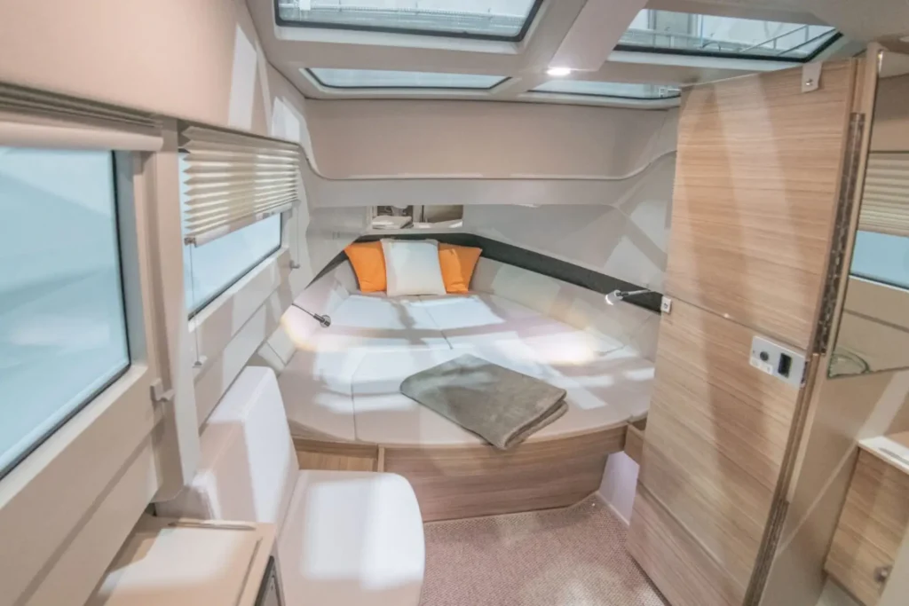 Immergetevi in un ambiente di puro lusso a bordo del Saxdor 320 GTC, dove la timoneria si trasforma in uno spazio accogliente e ampio. Un corridoio spazioso vi consente di muovervi agilmente mentre preparate deliziosi piatti e bevande per la vostra famiglia e i vostri amici. Qui, il silenzio è davvero d'oro: la timoneria offre un isolamento acustico impeccabile grazie a un pavimento flottante, appositamente sviluppato per il modello Saxdor 320 GTC.