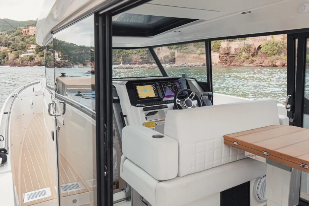 Un nuovo modo di vivere il mare, senza compromessi. Il Saxdor 340 GTWA ridefinisce il concetto di navigazione, combinando design all'avanguardia e funzionalità senza pari per offrirti un'esperienza unica, in qualsiasi condizione atmosferica. Questo yacht walkaround di nuova generazione unisce il piacere della vita all'aria aperta con il massimo comfort, creando un rifugio sicuro e resistente, che ti protegge dalle intemperie e ti consente di navigare con fiducia. L'unico walkaround della sua categoria dotato di ampie terrazze laterali, offre spazi generosi e aperti che facilitano il movimento e il relax. Lo spazioso divano di prua e il prendisole sul ponte di poppa sono l'ambiente perfetto per godersi il sole e la brezza marina. Il pozzetto, inondato di luce naturale grazie alle ampie porte scorrevoli e al tetto, entrambi in vetro, ti invita a muoverti con libertà e comfort. L'ergonomica postazione di guida, con un divano frontale per tre persone, garantisce visibilità e comodità senza pari. E quando è il momento di rilassarsi, il divano si trasforma in una dinette accogliente, perfetta per momenti di convivialità al coperto. Con il Saxdor 340 GTWA, vivrai il mare come non hai mai fatto. Nessun limite, nessun ostacolo. Solo puro piacere in ogni condizione atmosferica.