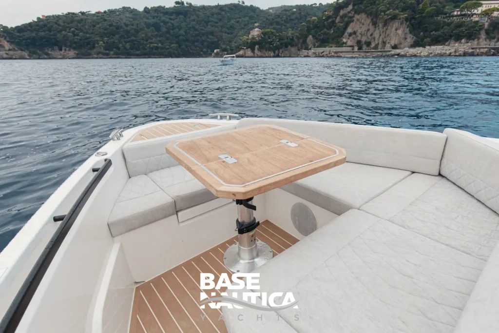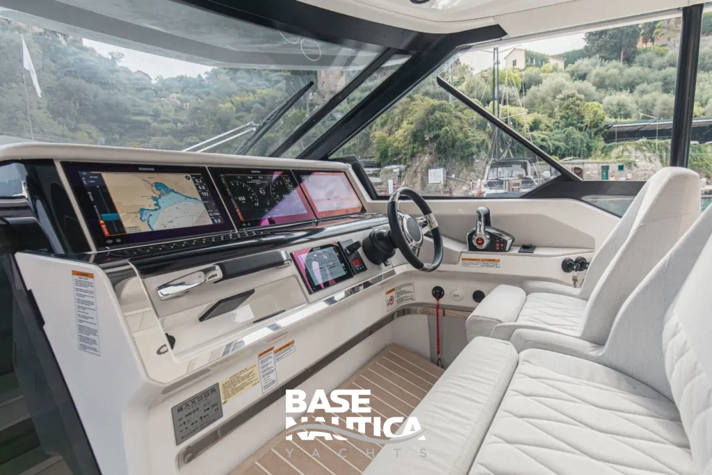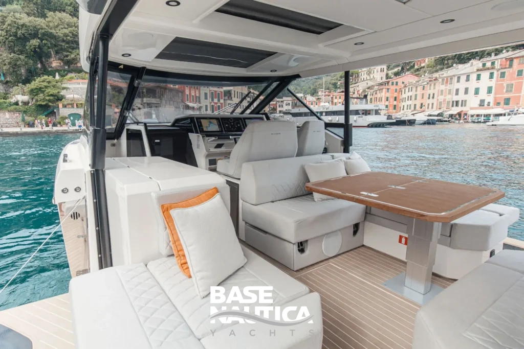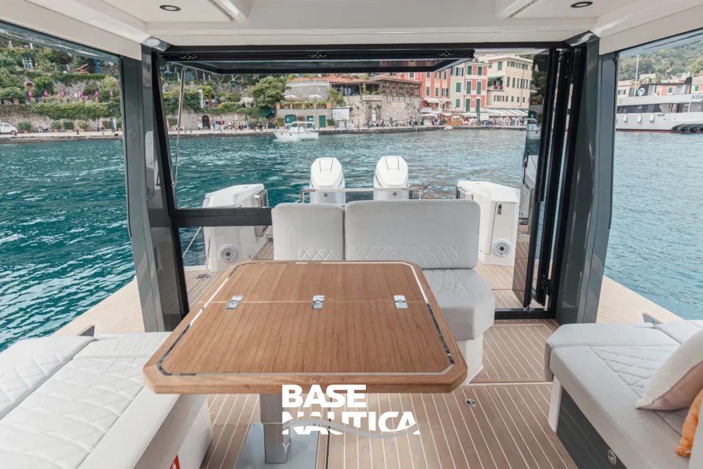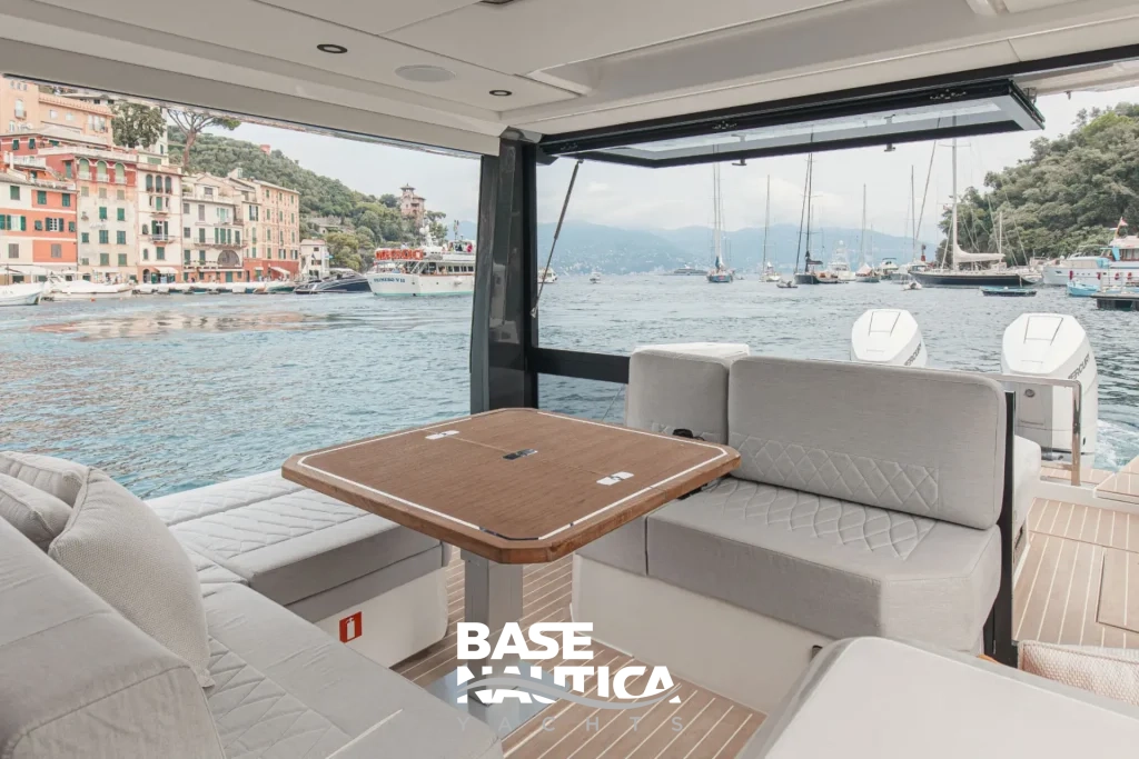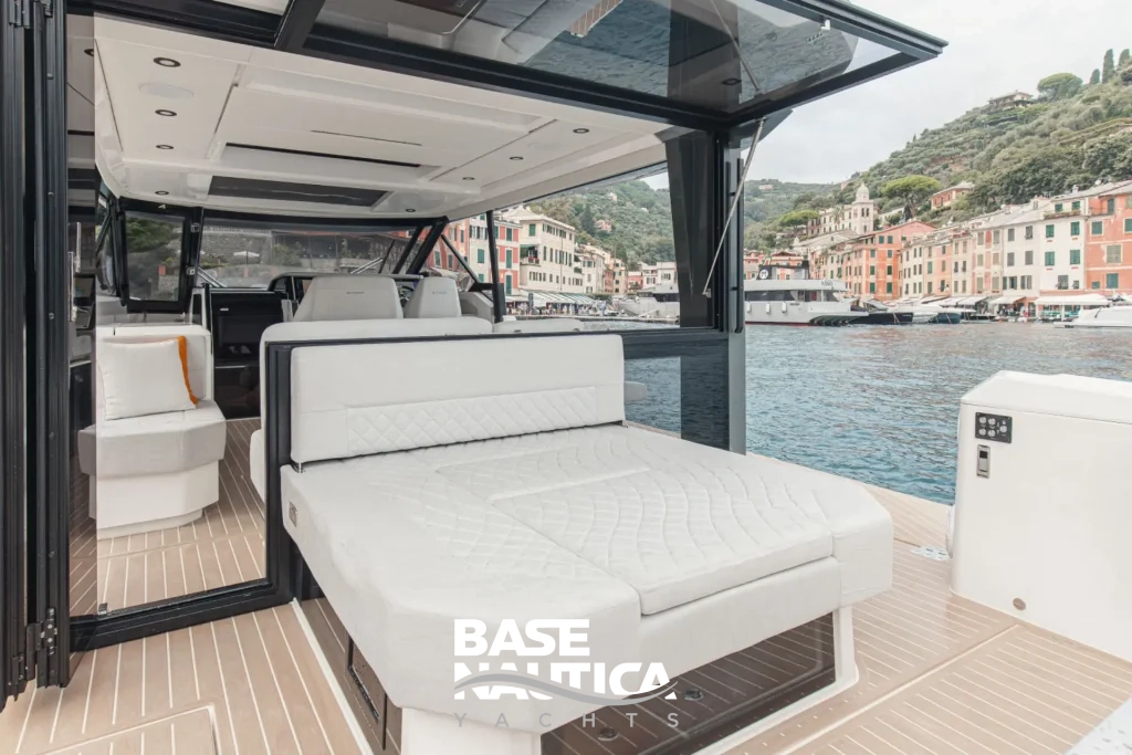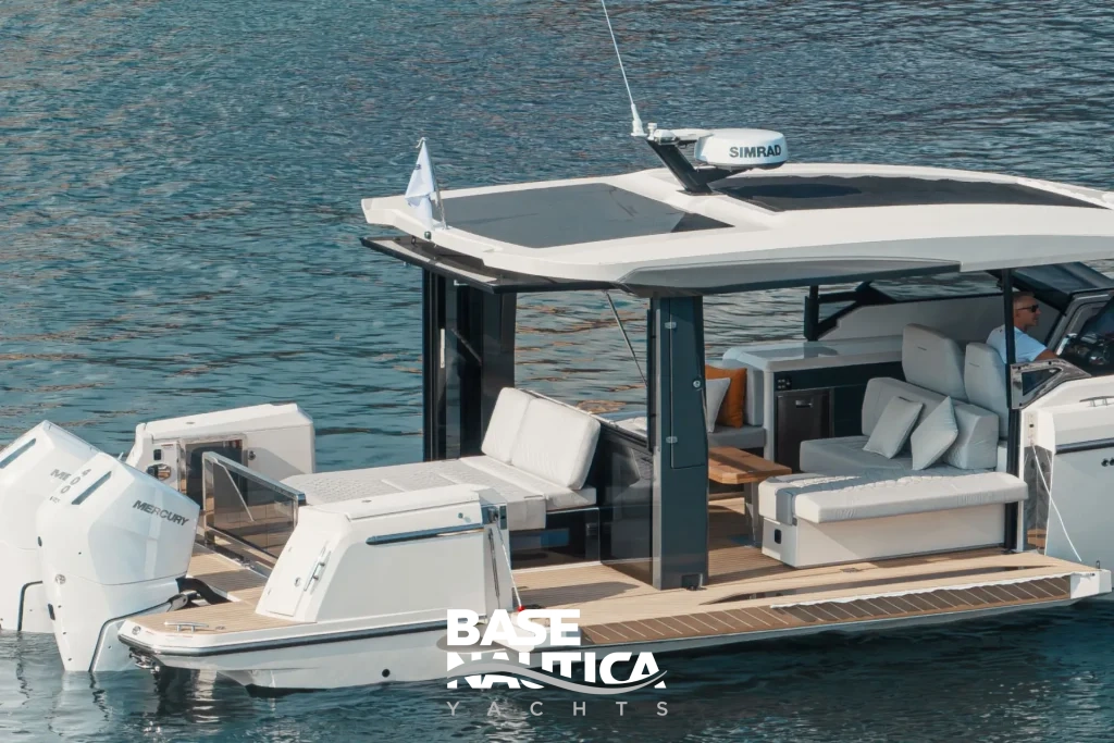 Progettato con scafo a due gradini per ospitare due motori fuoribordo, il Saxdor 400 GTO è sinonimo di potenza e agilità in mare. La timoneria aperta abbraccia l'intera larghezza dell'imbarcazione, offrendo uno spazioso ambiente interno e consentendo un accesso diretto alle terrazze laterali. Questa caratteristica di design unica massimizza lo spazio e l'impatto visivo che genera questo yacht.