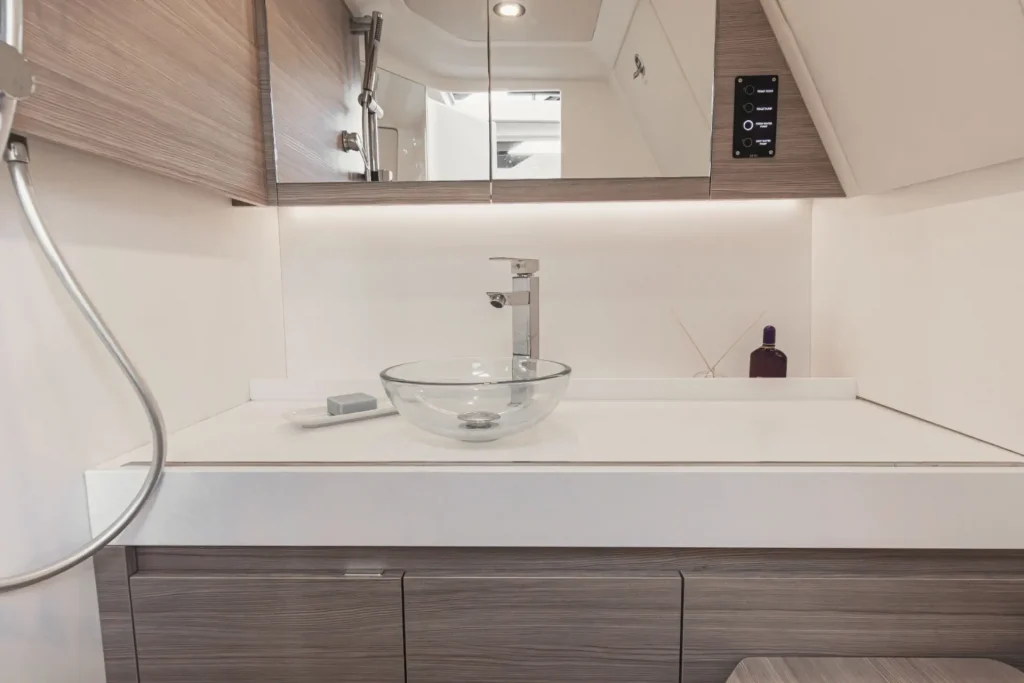 - Spaziosa cabina doppia a prua, bagno separato, un'opzione per una cabina per bambini e una cabina doppia a centro barca