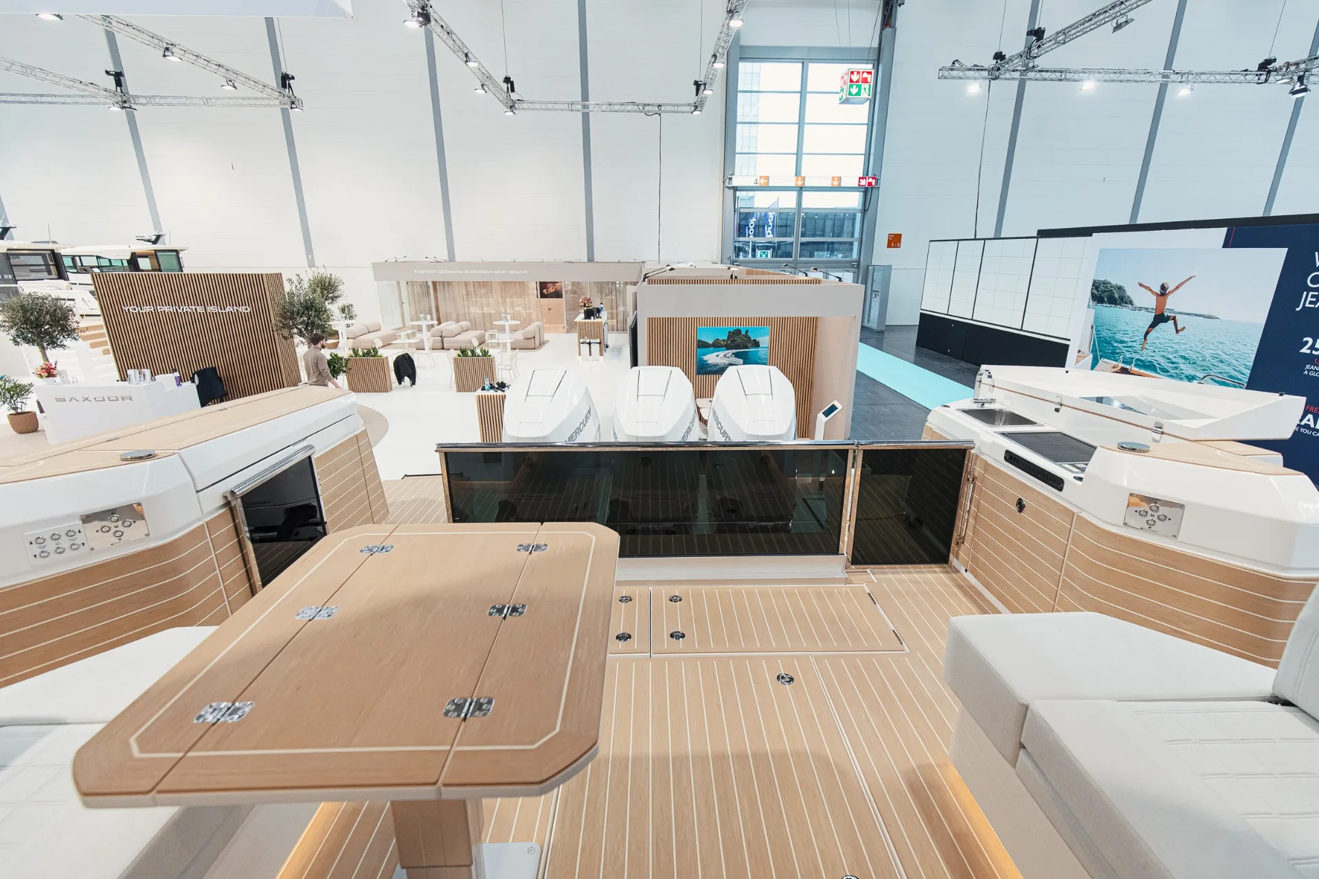 Gli interni del Saxdor 460 GTC offrono un layout innovativo con cabina di prua e la nuova cabina centrale doppia, completate da un bagno con doccia separata. Il salone e la dinette sono inondati di luce naturale grazie alle ampie vetrate della wheelhouse, creando un ambiente luminoso e arioso anche ad imbarcazione completamente chiusa. Il cruscotto scolpito a basso profilo può essere configurabile con un massimo di tre display Simrad da 16 pollici, mantenendo superfici pulite e controlli essenziali a portata di mano. Con l’opzione della cabina di poppa, il layout diventa a tre cabine, offrendo comfort per crociere prolungate. La capacità del serbatoio carburante di 1.300 litri garantisce un’autonomia eccellente per esplorare nuove destinazioni.